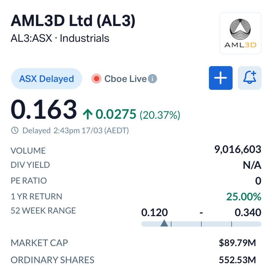 The sharp move in AML3D’s share price suggests the market is reassessing the company’s position.