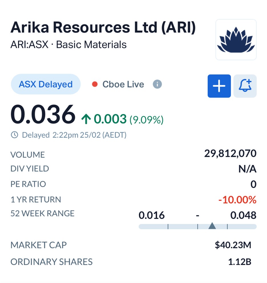 At a market capitalisation of around $40 million, Arika remains firmly in the small-cap bracket. The stock has traded between 1.6 cents and 4.8 cents over the past 12 months, underscoring its volatility.