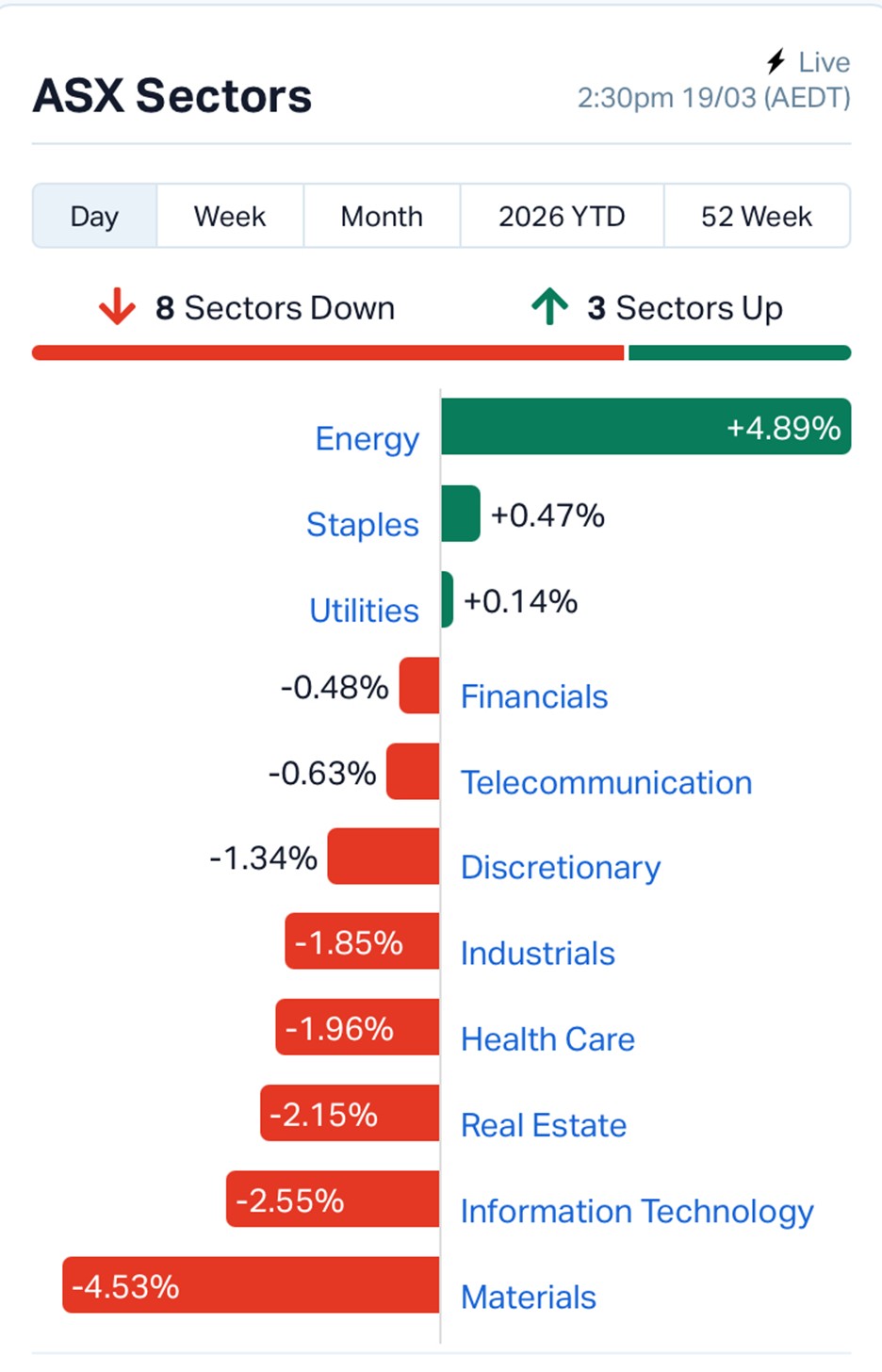 On one side, a sharp sell-off is erasing billions in value. On the other, energy stocks are surging as global tensions push oil prices higher. It is a session defined by contradiction, where the same forces hurting households are lifting a handful of companies.