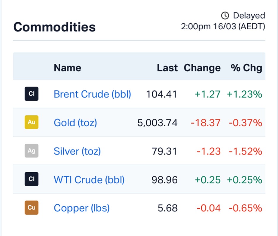 That fear has pushed Brent crude to about US$104.10 per barrel, while US benchmark WTI crude trades near US$98.66.