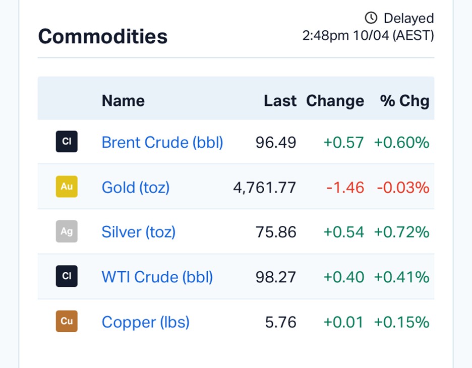 Brent crude is still holding near $US96.49 a barrel, a level that continues to pressure inflation expectations globally. That, in turn, is feeding into interest rate concerns, particularly in Australia where policymakers remain sensitive to energy-driven price shocks.