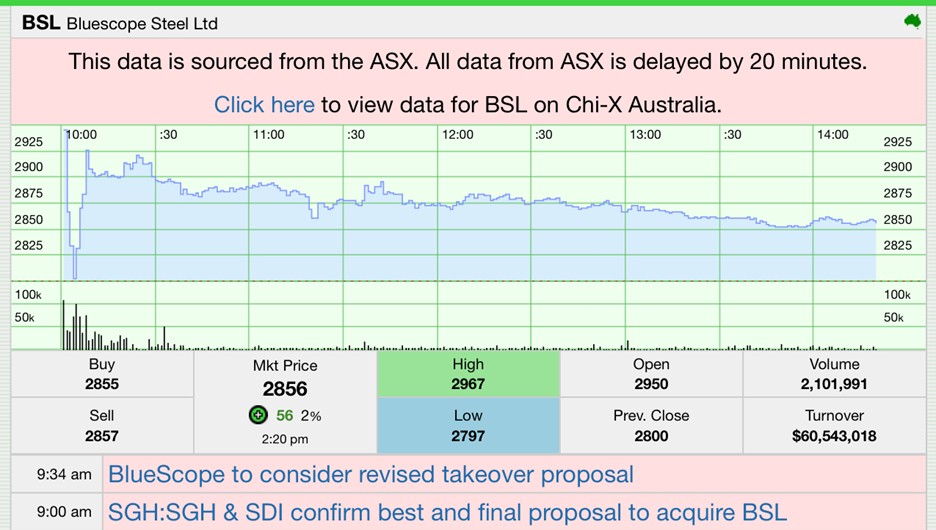 BlueScope shares traded higher following the announcement but remained below the proposed takeover price, a typical market response reflecting execution risk, regulatory approval uncertainty, and the non-binding nature of the proposal.