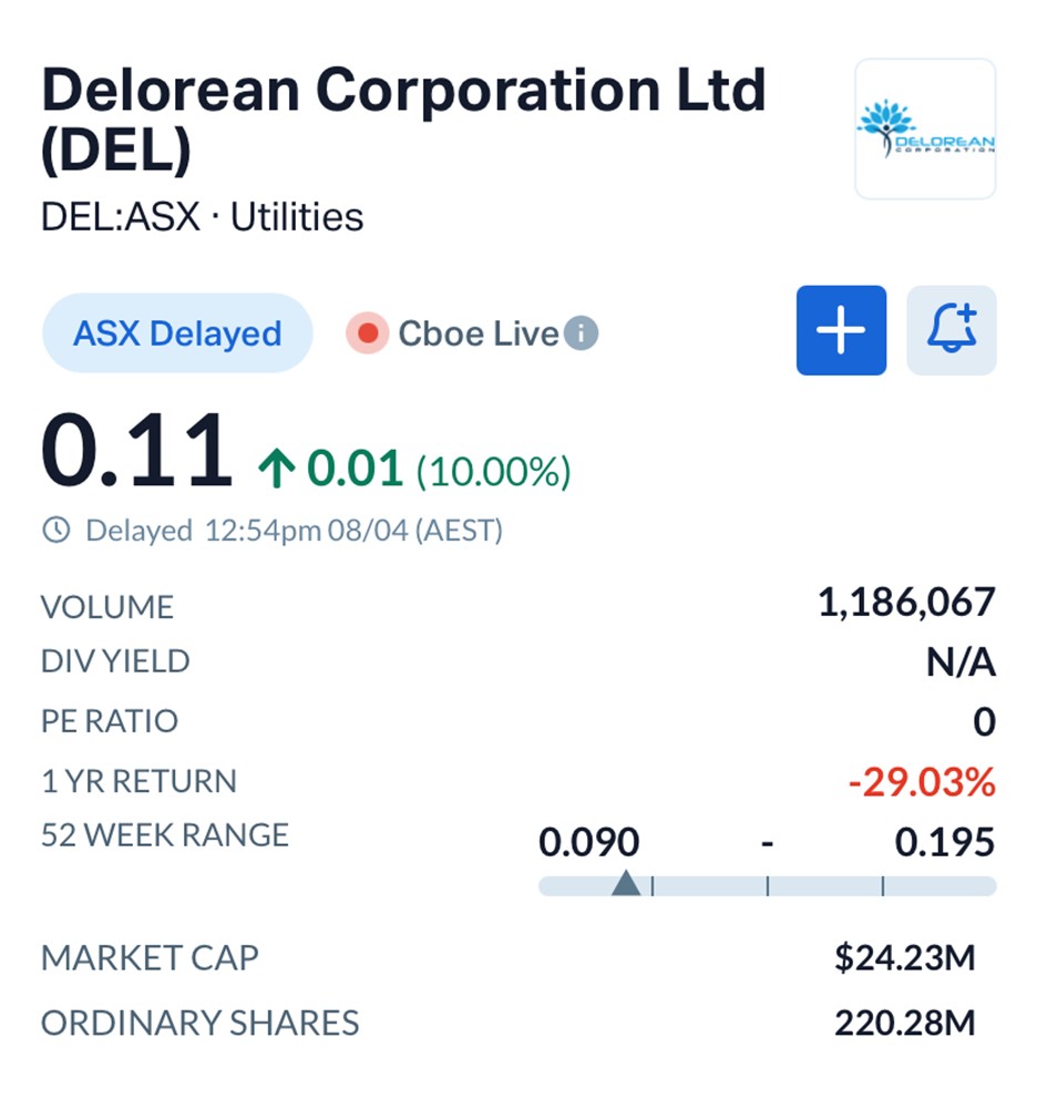 Shares in Delorean rose 10% to $0.11 following the announcement, as the market began to price in what many see as a transition from early-stage developer to infrastructure operator.