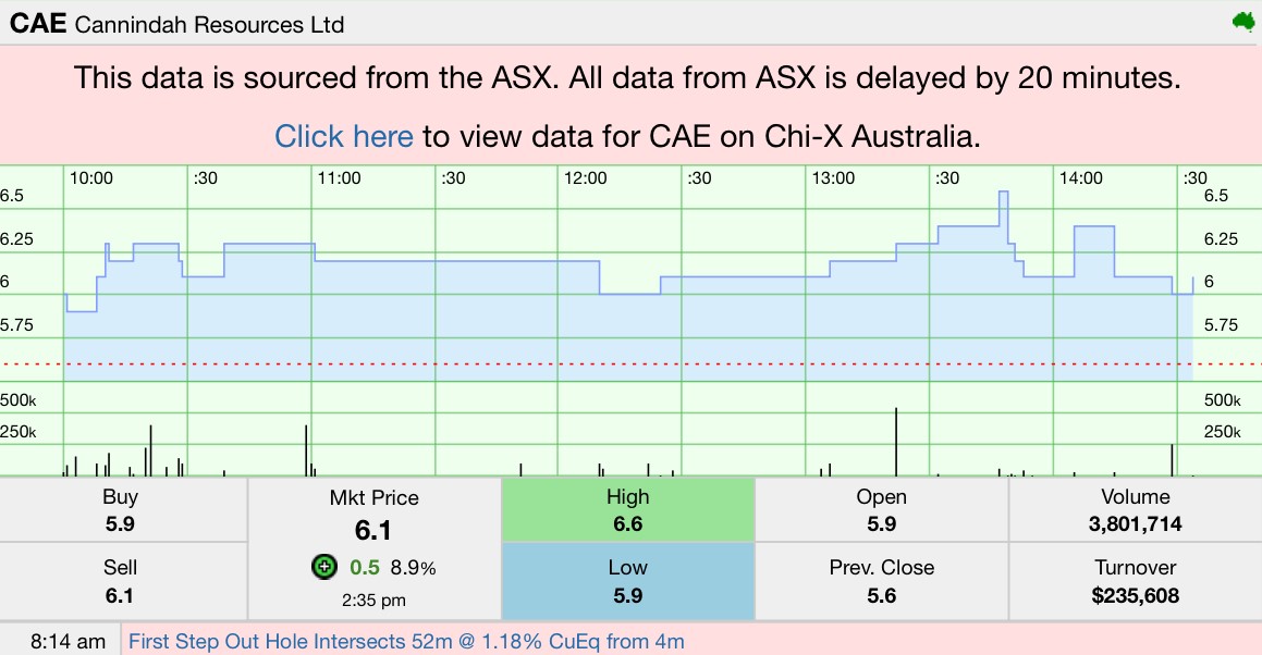 Following the announcement, Cannindah Resources (ASX: CAE) shares were trading at $0.061, up 8.9% on the day, with the stock maintaining a 12-month gain of more than 80%.