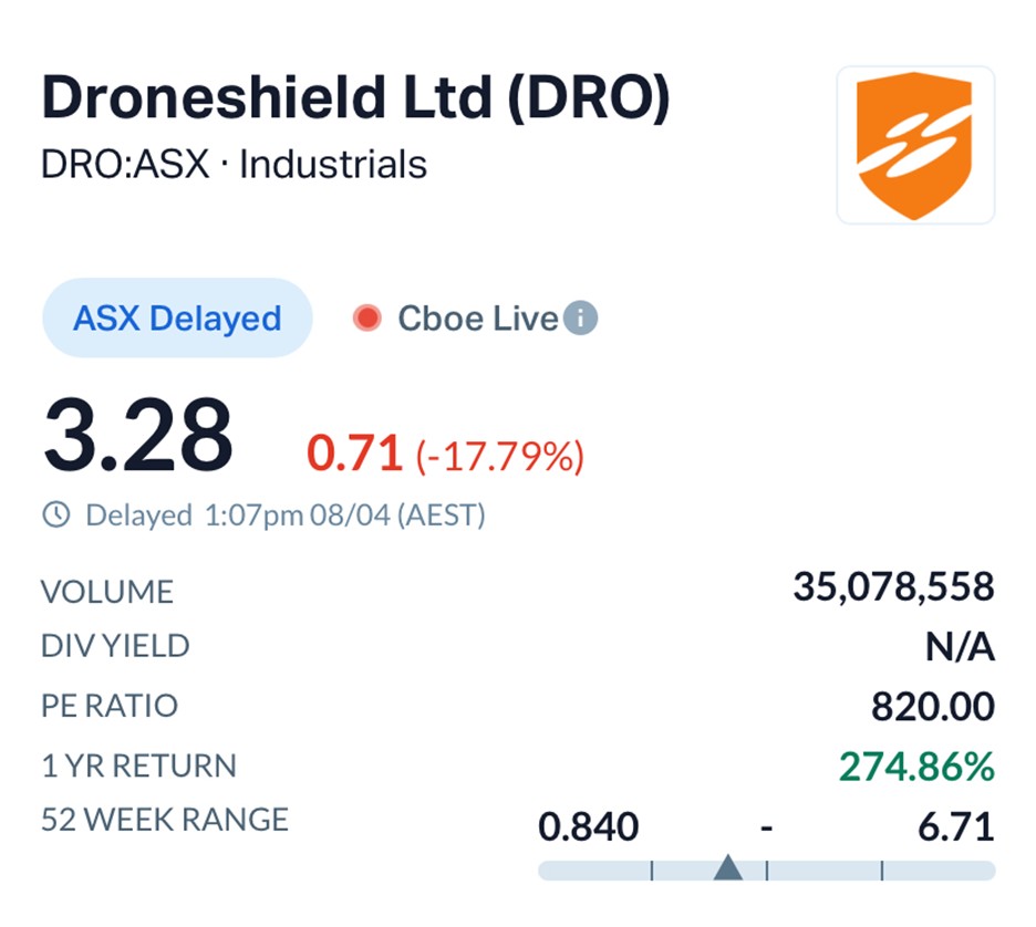 DroneShield operates in the fast-growing counter-drone and defence technology space, an area seeing rising demand as geopolitical tensions reshape military priorities worldwide.