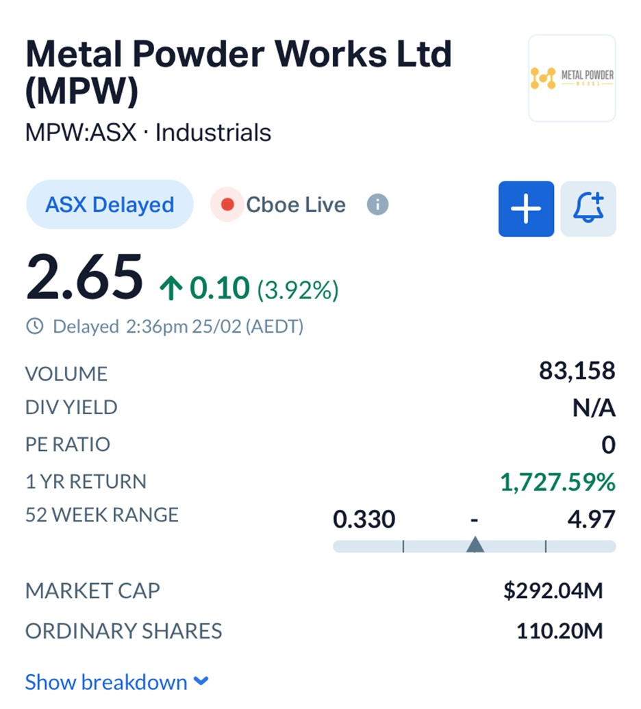 But that is precisely what has happened to Metal Powder Works Ltd.
