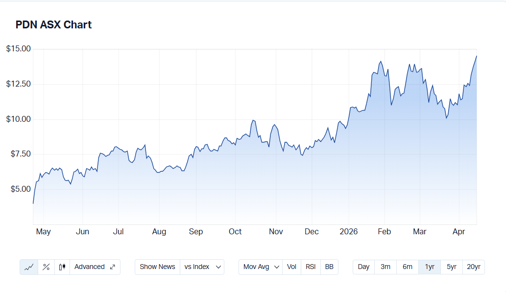 ASX: PDN 1 Year Stock Price Chart | Source: MarketIndex