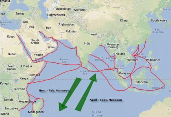 IMAGE: The network of trade spanning the Indian Ocean, propelled by the seasonal monsoon winds.