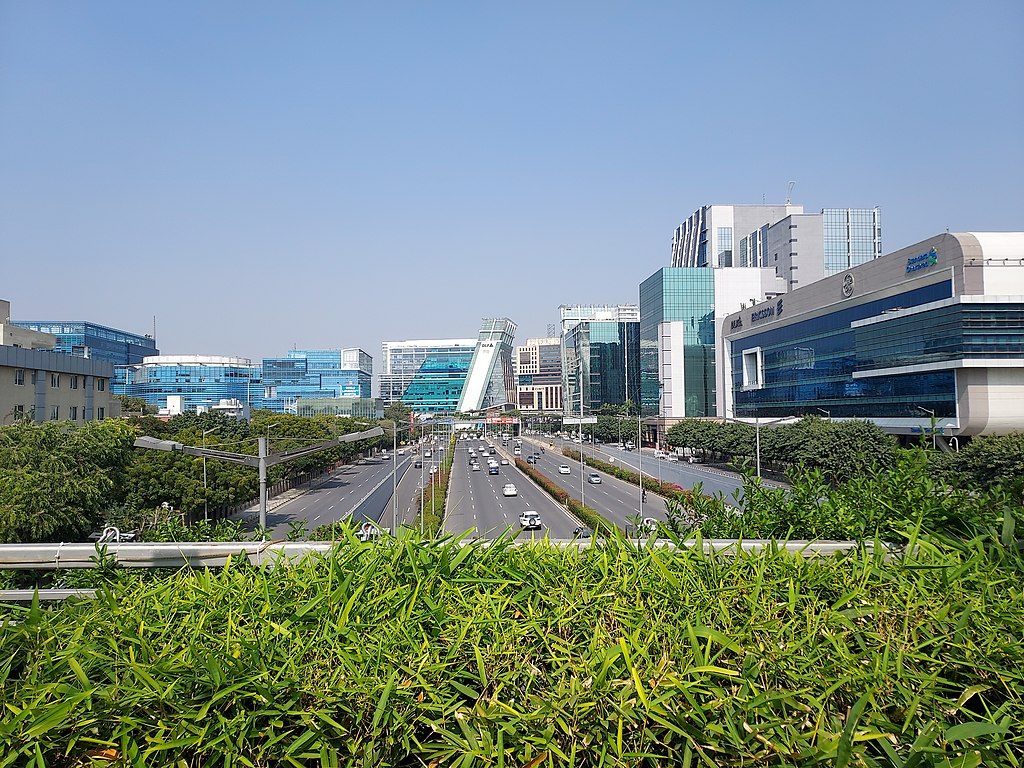 IMAGE: A glimpse of Cyber City as seen from an overpass spanning the highway in Gurgaon, located within the Delhi NCR region, India.