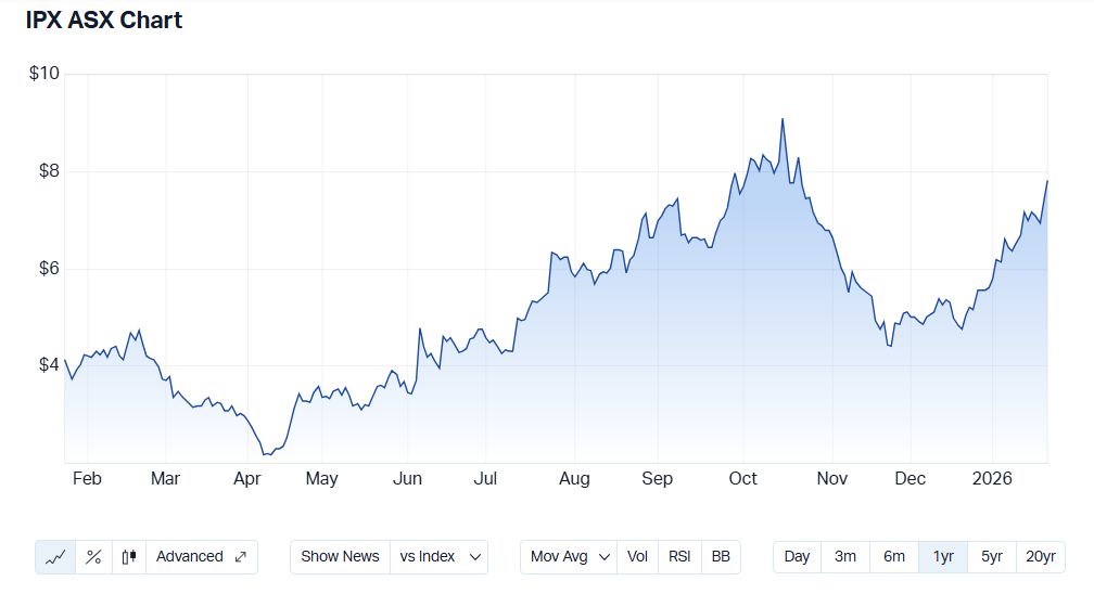 IperionX shares were last at $7.82, up $0.43 (5.82%), after trading between $7.48 and $7.90. Turnover was about $4.32 million on 560,816 shares, with VWAP at $7.705 and the prior close at $7.39 (last trade 2:32pm AEDT). The stock is up 9.22% over a week, 55.47% over a month, 39.64% year-to-date, and 88.43% over one year, outperforming the ASX 200 by 83.52% on a one-year basis.