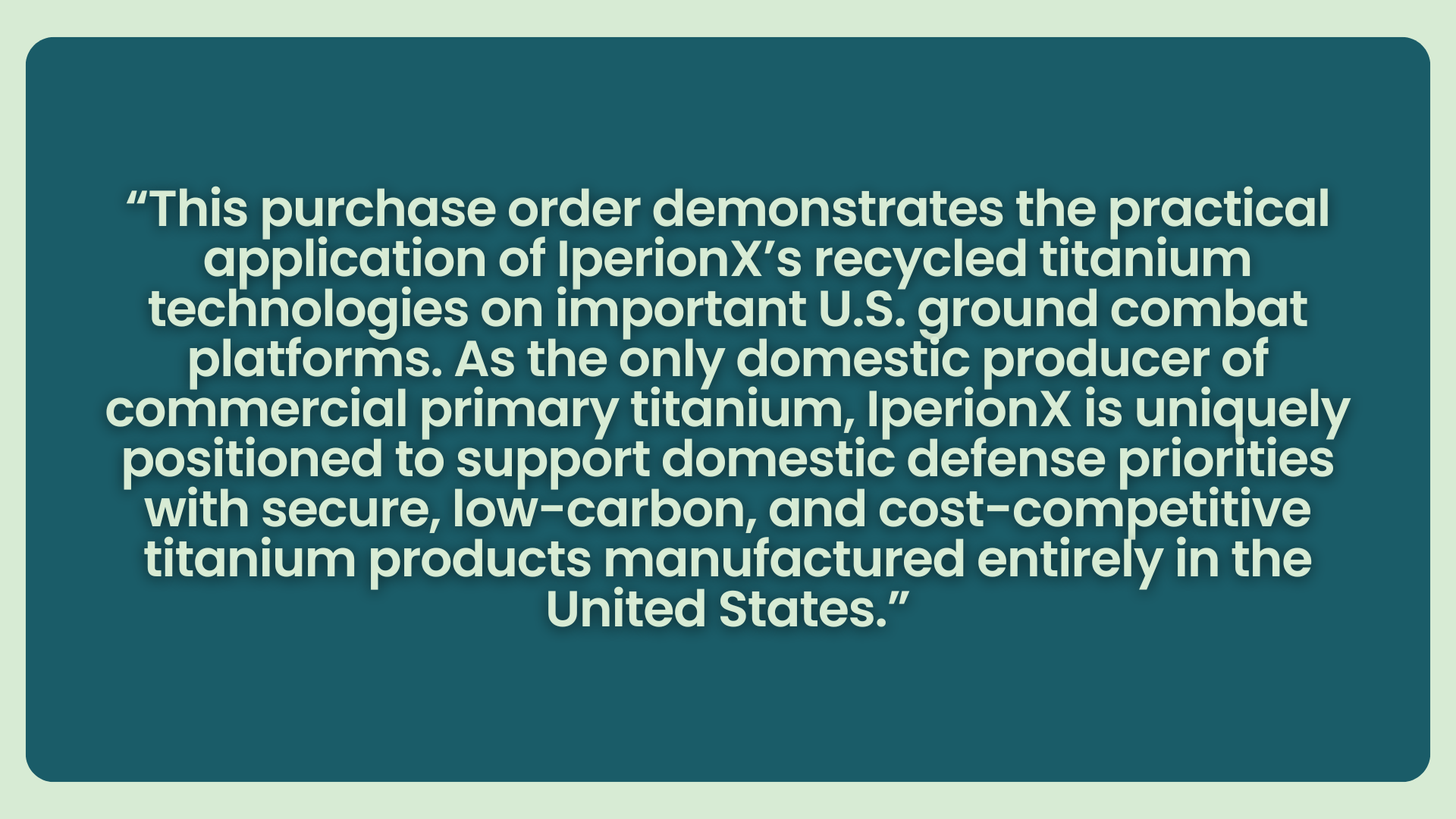 It is not a large revenue number in isolation. But as a signal, it matters. Prototype orders are the early gates that tell you whether an industrial story is staying in the “grant and pilot” lane or moving into the “use it on real platforms” lane. IperionX’s announcement frames this as the latter, calling the order an initial scope that could expand if the delivery is successful.