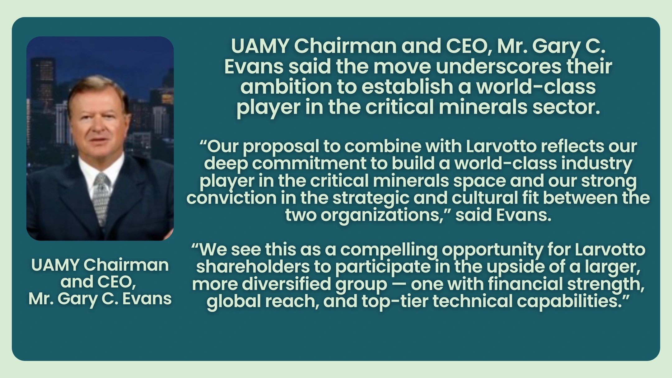 Commenting on the proposal, UAMY Chairman and CEO Gary C. Evans said the move underscores their ambition to establish a world-class player in the critical minerals sector.