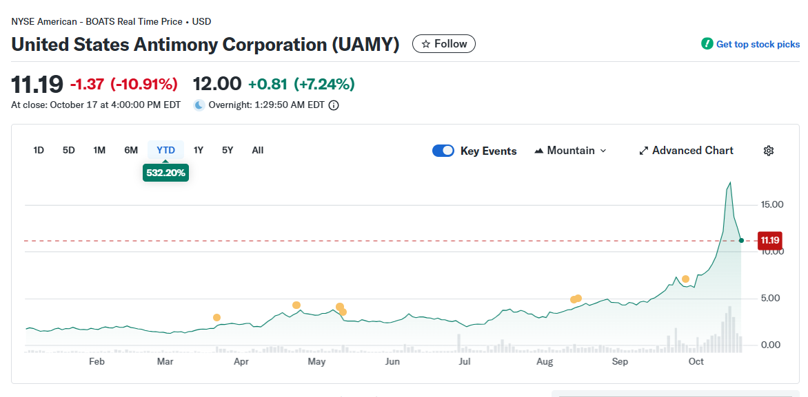 — United States Antimony Corporation NYSE: UAMY (@NYSE_UAMY) October 20, 2025