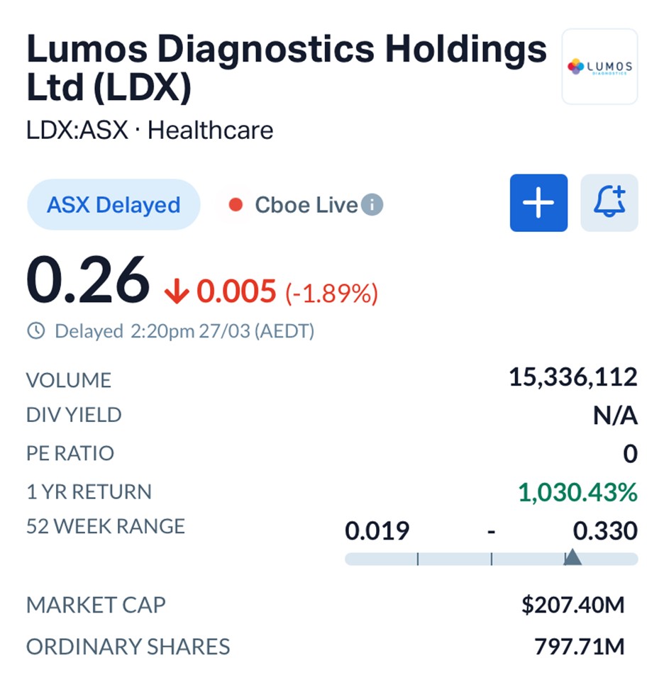 The US remains the largest diagnostics market globally, and Lumos is now positioned to compete in a segment estimated to exceed US$1 billion.
