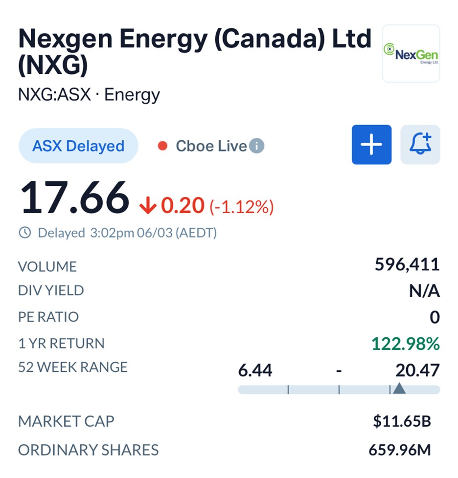 At the time of writing, NexGen shares on the ASX were trading around $17.66, giving the company a market capitalisation of roughly $11.65 billion.