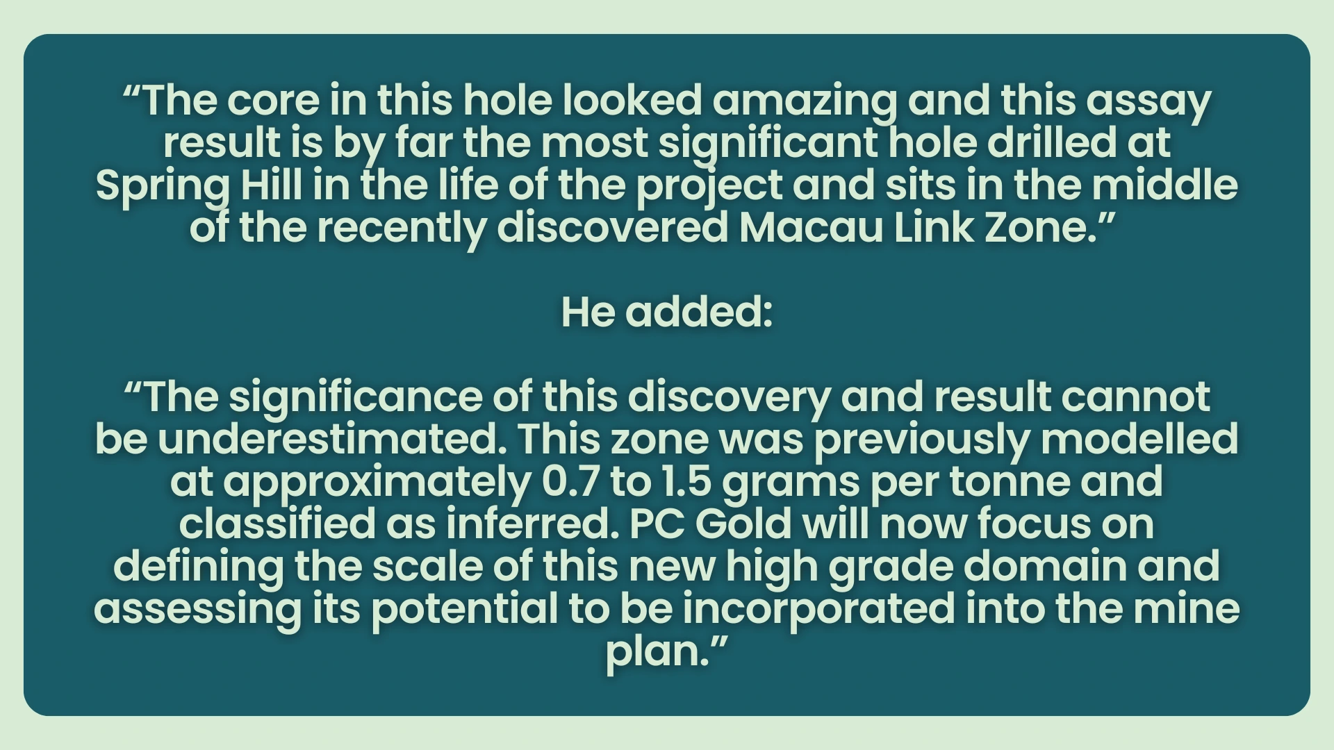 The Macau Link Zone appears to convert what was once low grade inferred ground into something potentially mineable and valuable.
