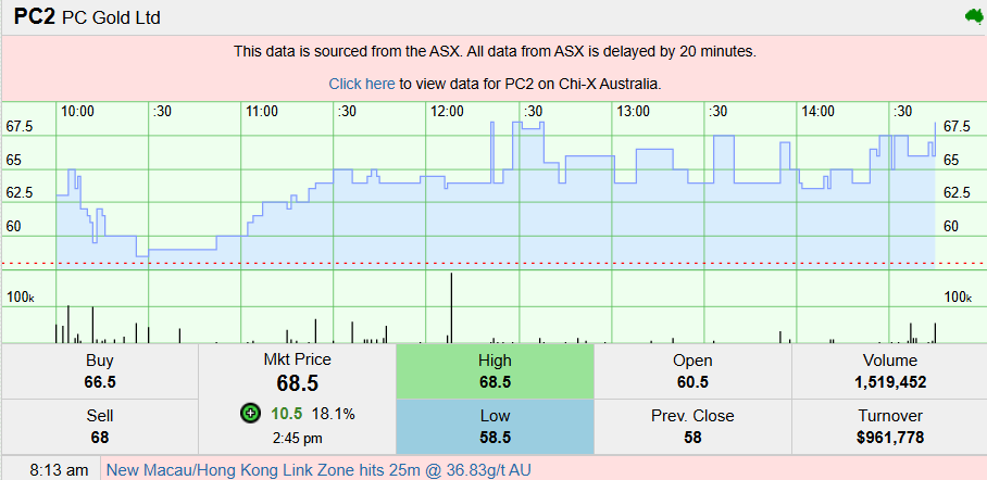 The market clearly took notice. PC Gold (ASX: PC2) shares were up by 18.1% at the time of writing this article.