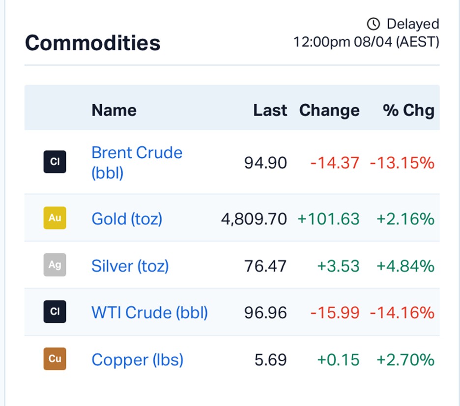 Brent crude has fallen more than 13% to around $94 a barrel, while US crude dropped nearly 15% to $96. That sharp reversal has triggered a major sector rotation across the ASX.