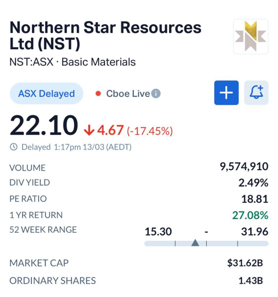 Thousands of Australian investors hold Northern Star shares either directly or through superannuation funds, making the stock a common exposure in local portfolios.